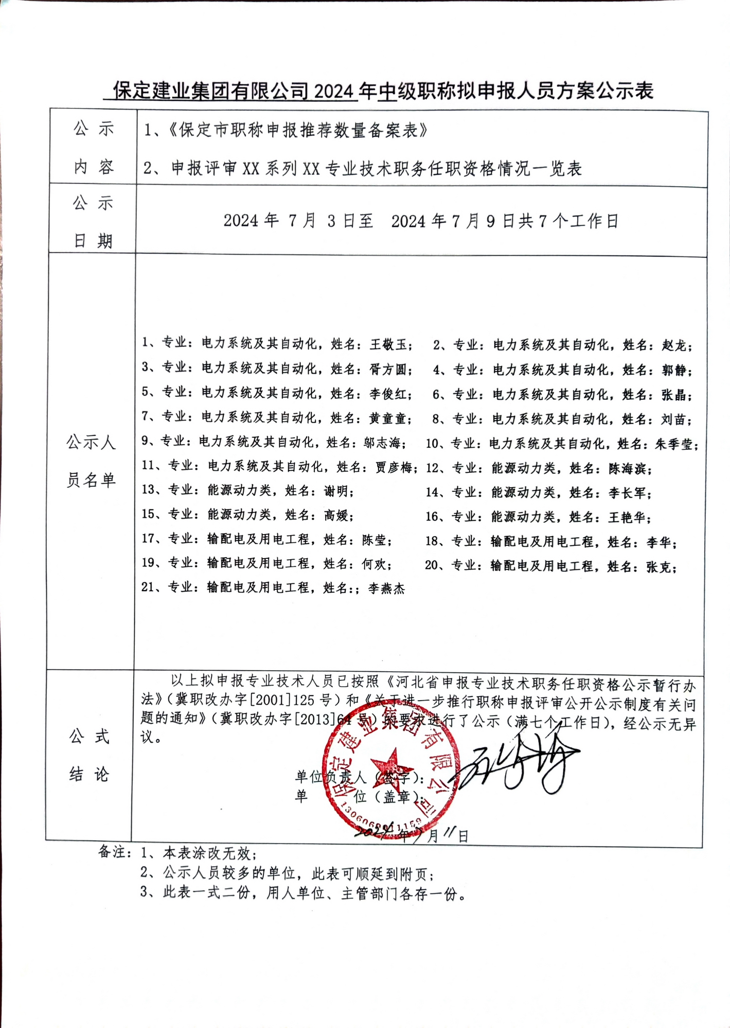 2024年中级职称拟申报人员方案公示-能源电力系列