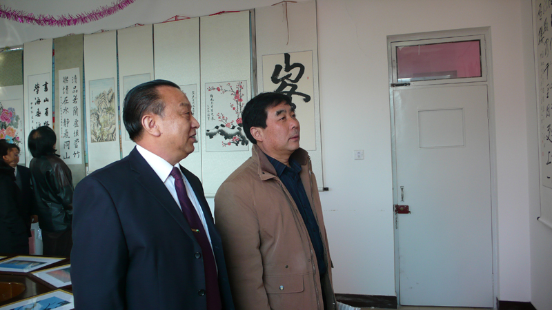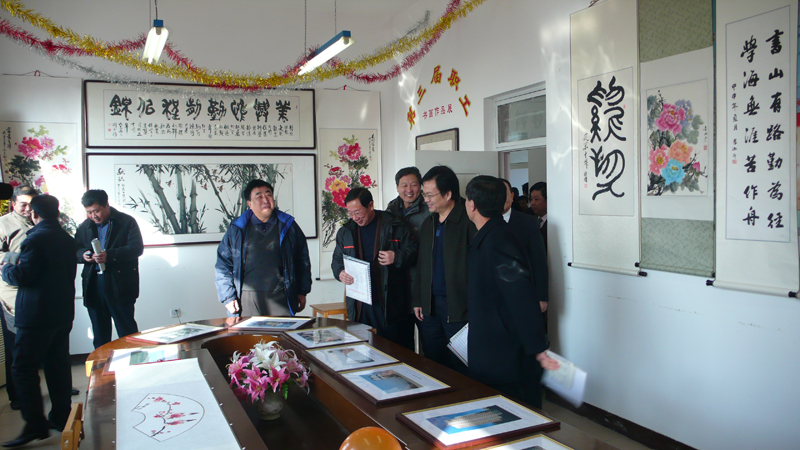 董事长张兰柱陪同建设局领导参观十周年书画展
