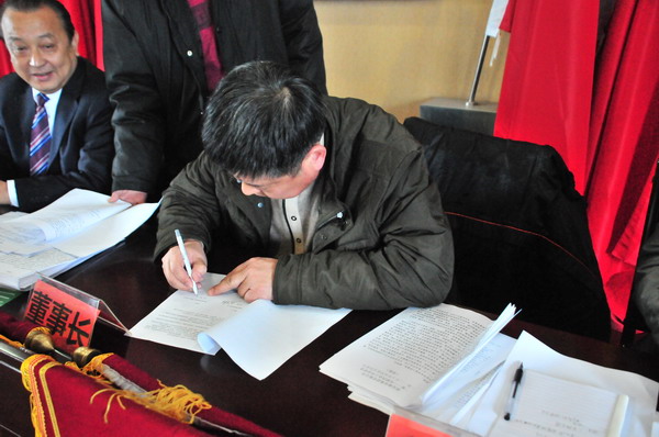 球友会(中国)副总经理、三公司经理任培农在2012经济生产责任状上签名