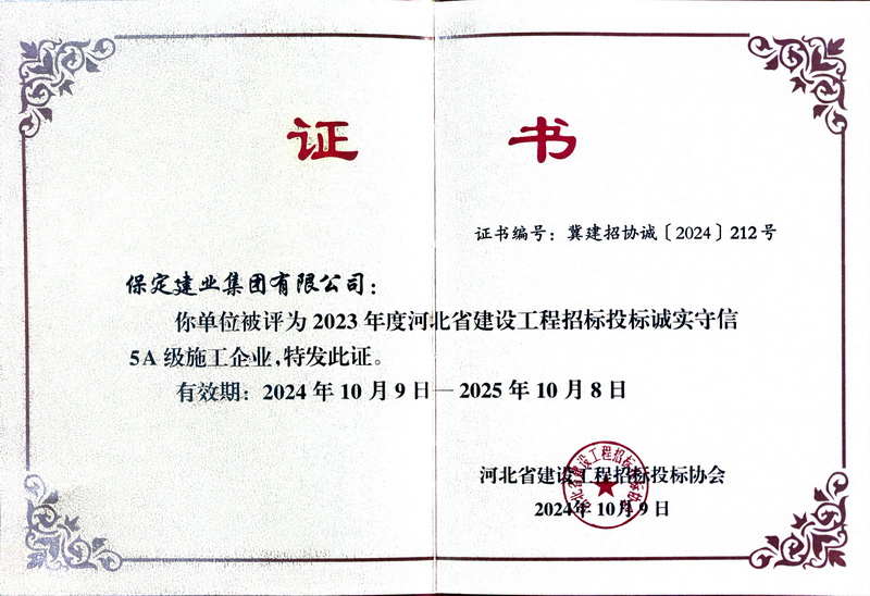 2023年度省建设工程招投标5A诚信企业